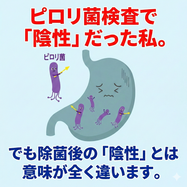 ピロリ菌検査で「陰性」だった私。でも除菌後の「陰性」とは意味が全く違います。